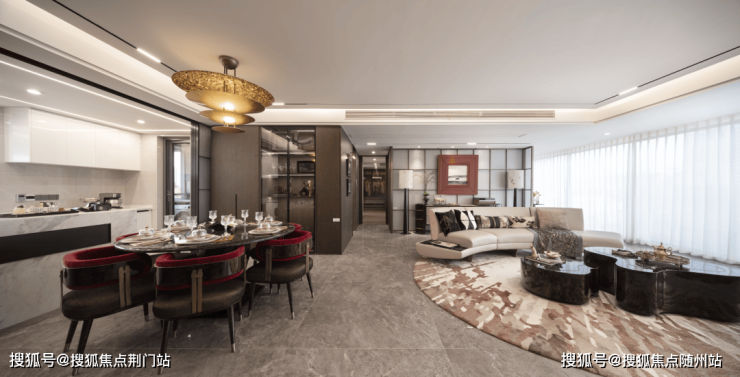 LDKB一体化: 餐厅、客厅、阳台、厨房无界相融, 可以为家人提供更多社交生活空间,无论是办公、会客,品茗、闲话,追剧、看电影,亦或陪同孩子玩乐高、做游戏,如此空间皆绰绰有余。