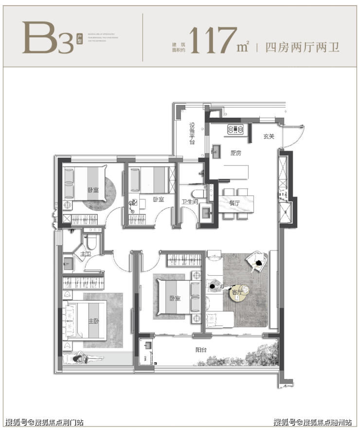 从二人世界,到三口之家,再到三胎时代,家庭的每一次改变,都是对住宅格局构造的一次考验。 约 117 ㎡精准洞察改善需求,以恰到好处的阔绰四房布局,延伸不同家庭结构的生活想象,在享受家庭温暖的同时,亦能保证自己的生活空间。
