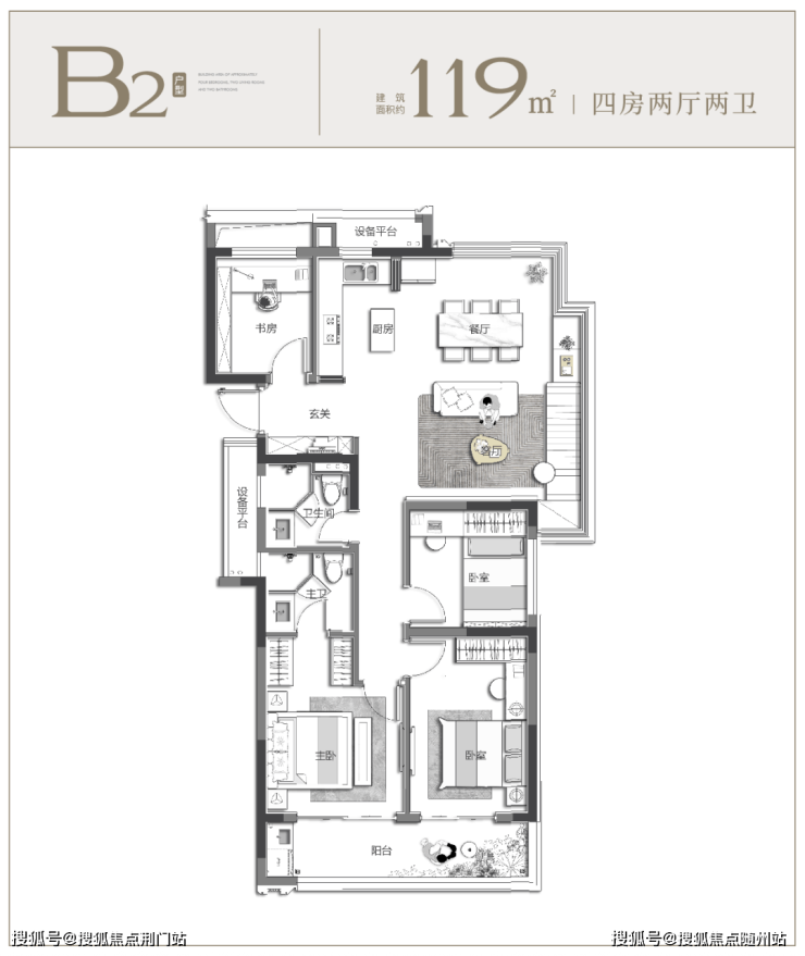 建面约 119㎡四房空间,深入洞察城市人居对美好生活的诉求,在空间的打造上,不止追求物理尺度的扩大,更在于功能空间的场景化演绎,此外,边套格局带来的无敌采光与瞰景视野,也让其出场自带“高光BUFF”。
