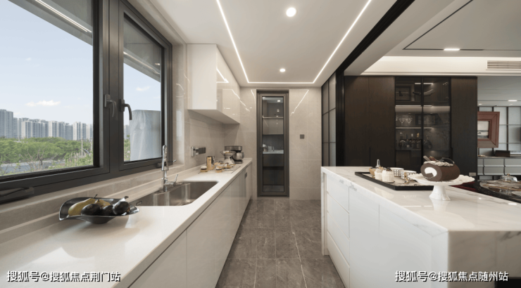 中西双厨 +北向家政阳台: 约 4.8 米大尺度厨房开间,自由切换中 /西双厨模式,中餐煎炒烹炸信手拈来,西餐烘焙、沙拉制作更显格调;厨房与餐客厅无界互动,做饭时能与家人朋友聊天;独立北向家政阳台与生活空间分离,家政物品收纳井然有序。