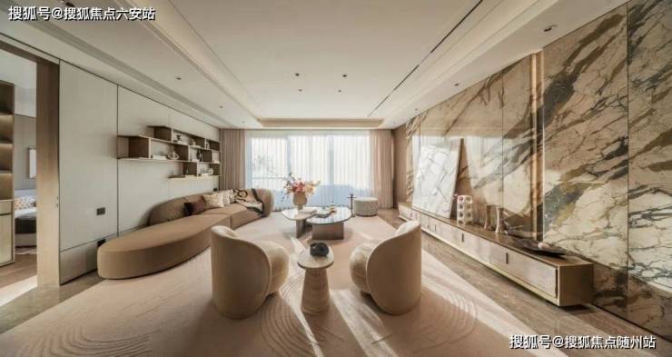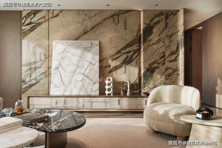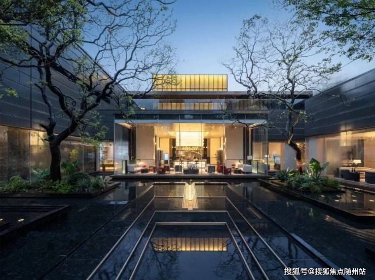 • **流体美学**:外挑铝板如湖面涟漪,8.9米挑高架空层化身艺术展厅,入口处百米玉质长卷与弦月水景,重构归家仪式感。