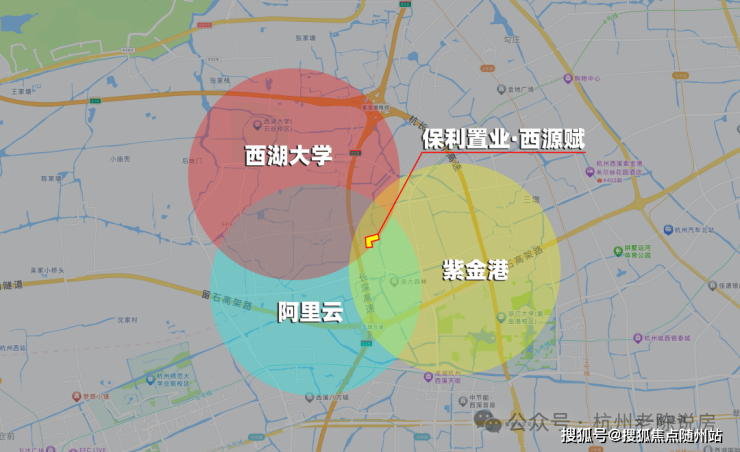 高智圈层——高智人群密度最大区域,距浙大仅1.5公里,阿里云,云深处等科创独角兽环绕