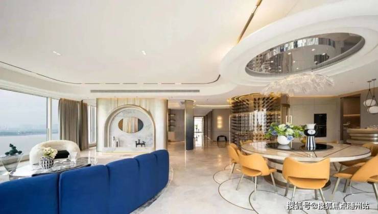 一层仅一户,自带独门独户的仪式感,在繁华之上的宁静,私密度直逼大独栋。走进家门,是邱德光定制的现代摩登艺术:玄关处,整面渐变曲面艺术玻璃,映射若隐若现的江景;客厅中,钱塘江的柔美曲线,融入弧形吊顶与奢石拼花;