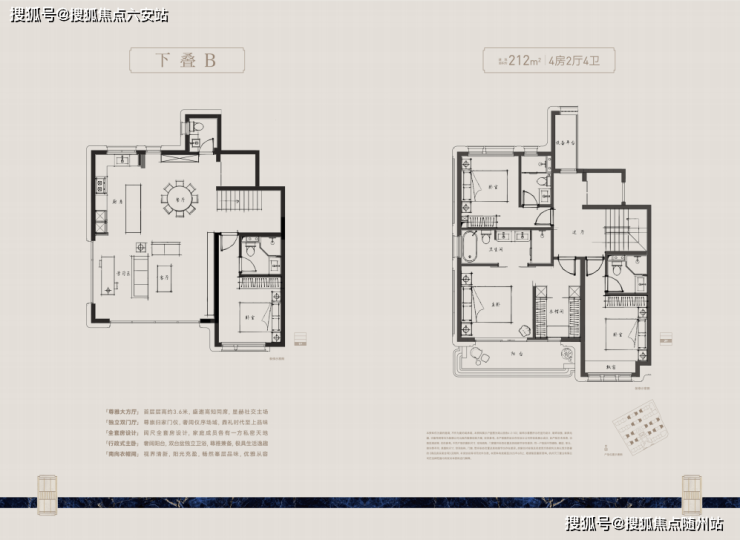 全套房设计,提升居住舒适度。上下叠各有ABC三种户型,面积在212-280平之间,且所有户型为全套房设计,主卧更是可实现“小家化”布局,家庭成员各有一方私密天地,享受更加舒适、静谧的墅居生活体验。