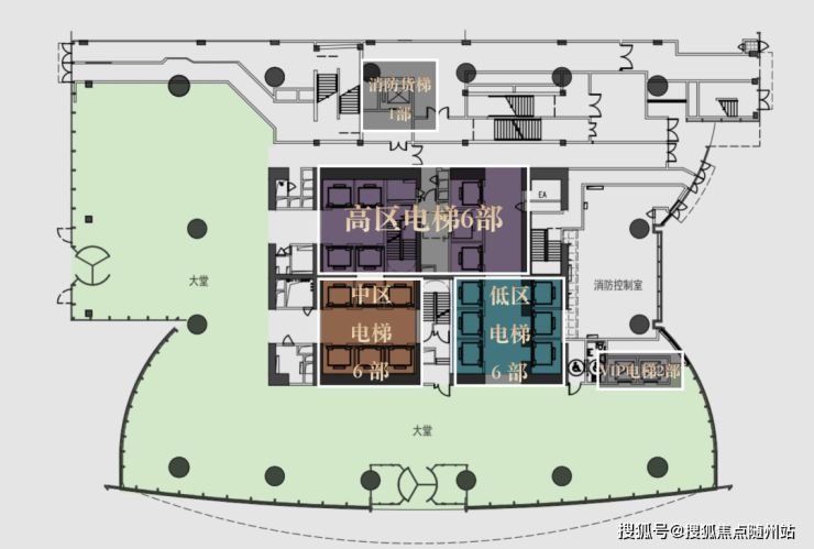 规划了18部独立商务电梯、2部总裁VIP电梯及1部消防货梯