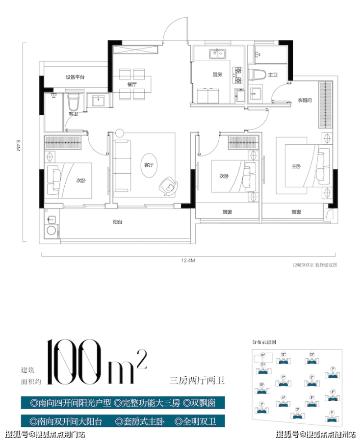 天阳·湖与舍有建面约100-128方三个户型,共同特点就是大面宽,特别是建面约100方户型,又一次刷新了行业对户型的认知。