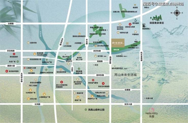 新桂香园项目位于安吉城东,是一个集自然美景与现代便利于一体的高端住宅区。项目紧邻杭长高速收费口,直线距离仅700米,确保了居民出行的便捷性。西侧的绕城东路提供了另一条快速通道,使得居民可以轻松连接城市的其他部分。