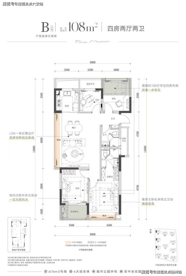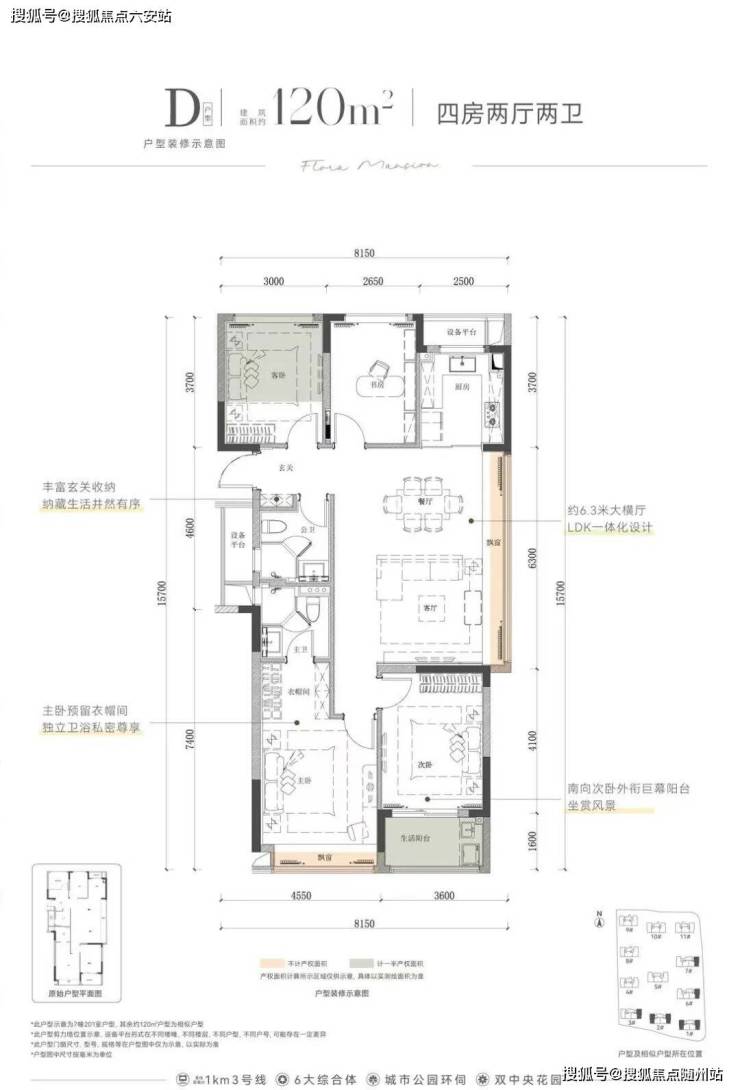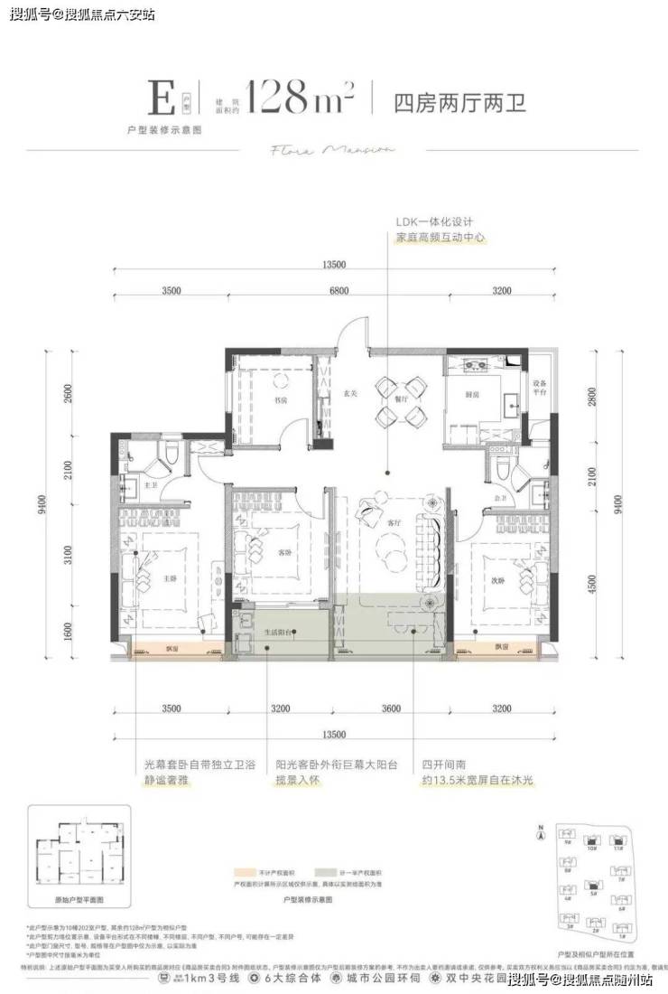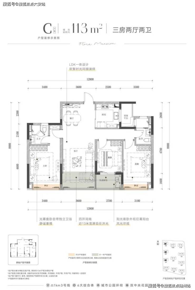 建面约113㎡,则是阳光“平权”设计,四开间朝南,南向面宽达到惊人的约12.8米,主卧、次卧、客卧、客厅全朝南,每位家人都能享受阳光的妥帖关照,不用委屈。