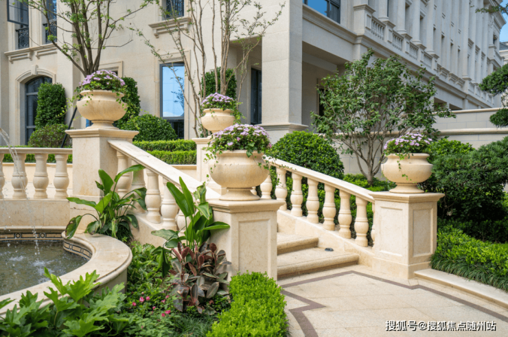 项目承袭绿城玫瑰园系精髓,外立面采用全石材干挂+香槟金铝板,复刻巴黎凡尔赛宫的廊柱、山花与宽檐元素。270°转角露台、6.8米挑高会客厅、私家电梯井直通地下室,每一处细节皆彰显新古典主义美学。