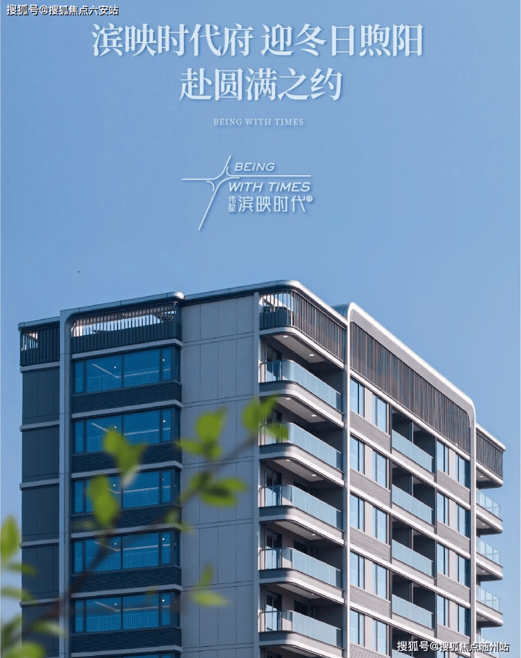 滨映时代府,蜿蜒勾画,如一束束“银色丝带”轻盈萦绕。玻璃幕墙似静谧江面,银灰色铝板犹如流淌的波光,在日升月落间,映照出一幅现代版的“三江潮水映如蓝”画卷。