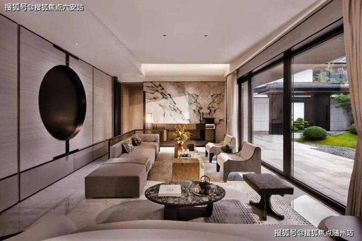 桃木色铝板复刻古木纹理,搭配大面积落地窗,既还原中式窗棂的通透,宽幅的开窗面又让山景、院景一无窒碍地涌入室内。