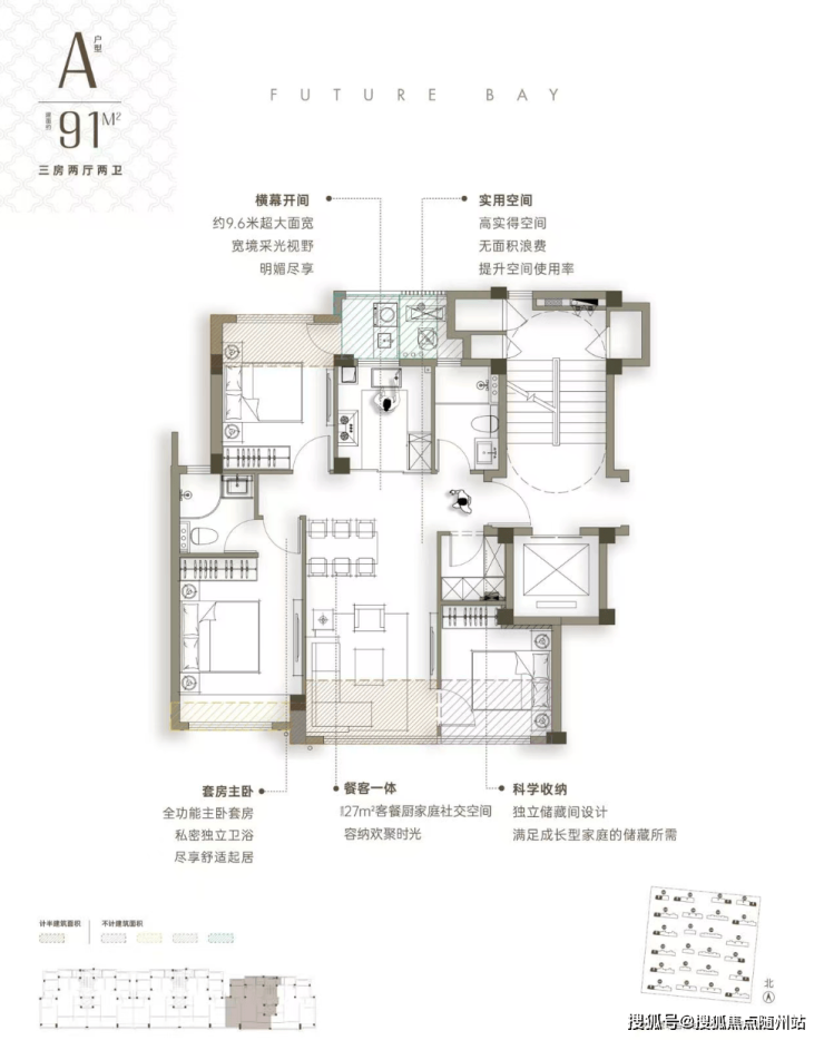 更贴心的是,连91㎡都配备了独立储藏间,婴儿车、行李箱、换季衣物都有了专属的“家”,彻底解决小户型的收纳痛点。