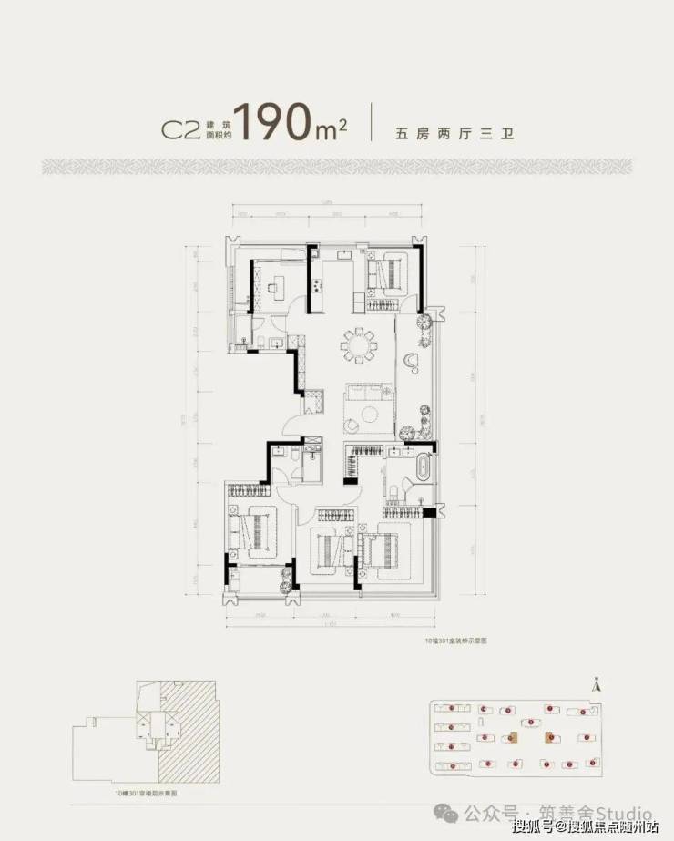 项目容积率2.0,绿地率约35%,整体规划了14幢13至15层的高层及4幢6层的叠排,建筑面积12.5万方,高层部分标准层高约3.1米,架空层高度约5米,部分楼幢架空层达8米之巨,推出的高层产品建筑面积139-190㎡,叠墅230-260㎡。纯改善的产品面积段,高层也是两梯两户的设计,妥妥板块标杆改善了。首开的户型产品主要为139㎡、170㎡、190㎡。