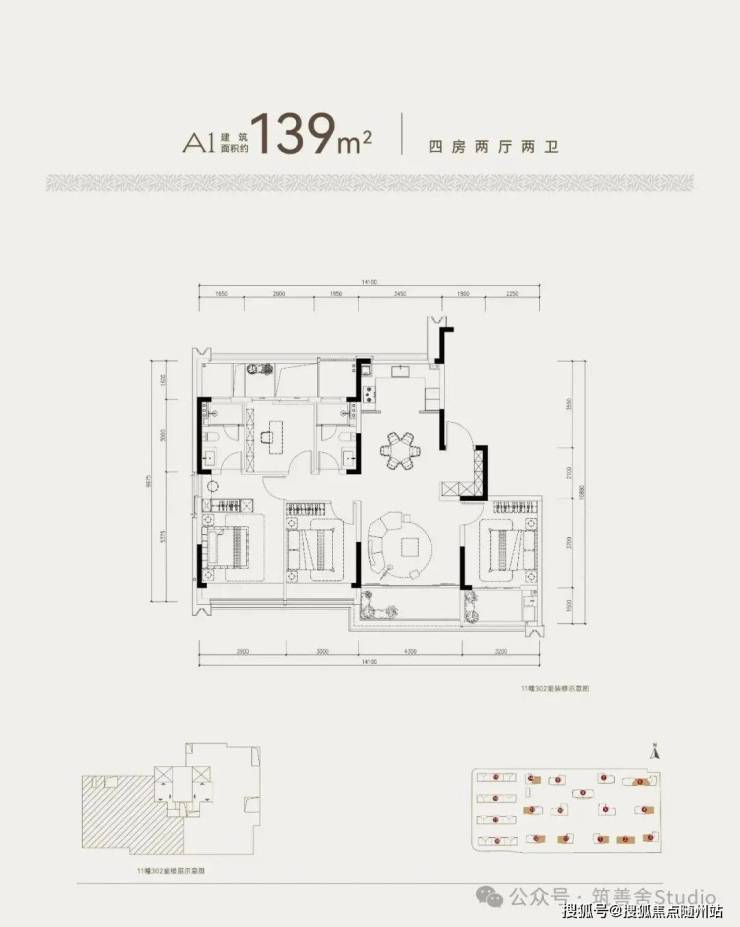 小高层仅13-15F,建面139-170-190方,层高3.1米+使用率95%以上~叠墅6F面积232-265方