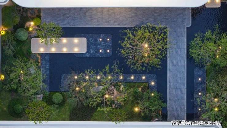 超10000㎡实景美学园林,如同一幅精心绘制的湖居长卷。约400㎡景观戏水池静卧园中,池水澄澈,映照天光,池畔绿植环抱,铁冬青、朴树点缀其间,不仅是视觉焦点,更是未来邻里相聚、亲子嬉戏的社交场域。这里,夏日清凉与日常雅趣共生。