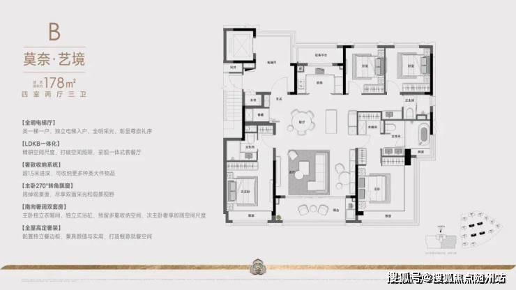 建面约178方四房两厅三卫:这款户型,则站在追求品质改善人群的角度,做出了四房三卫双主套设计。主卧与次卧均为南向套房,两代人生活平权,尊重每一位家人的「私域空间」和「阳光平权」,很多房企都做不到。还配置进深超1.5米的储藏空间,兼顾日常生活的方方面面。