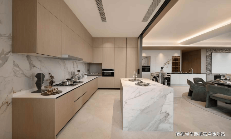 LDK一体化空间:约100㎡超大横厅,中西双厨双中岛设计,总统式套房配备独立家政间、衣帽间及干湿分离卫浴,满足家族社交与私密需求。
