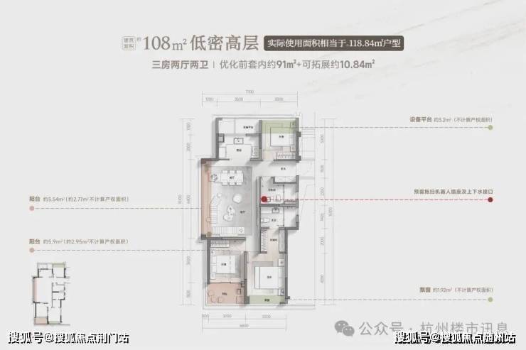 首先,它把108㎡的面积,做出了120㎡的既视感,赠送率极高,吊打市面同等面积户型。