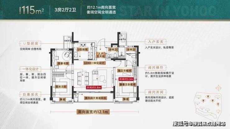 约12.1米南向面宽,三开间朝南,搭配LDKB一体化边厅设计,无界拓展家庭互动场景