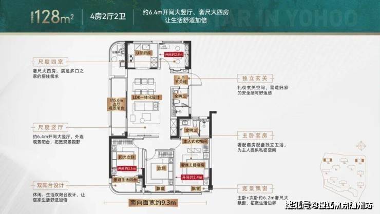 南向三卧布局,约9.3米巨幅观景面,尽揽阳光与风景