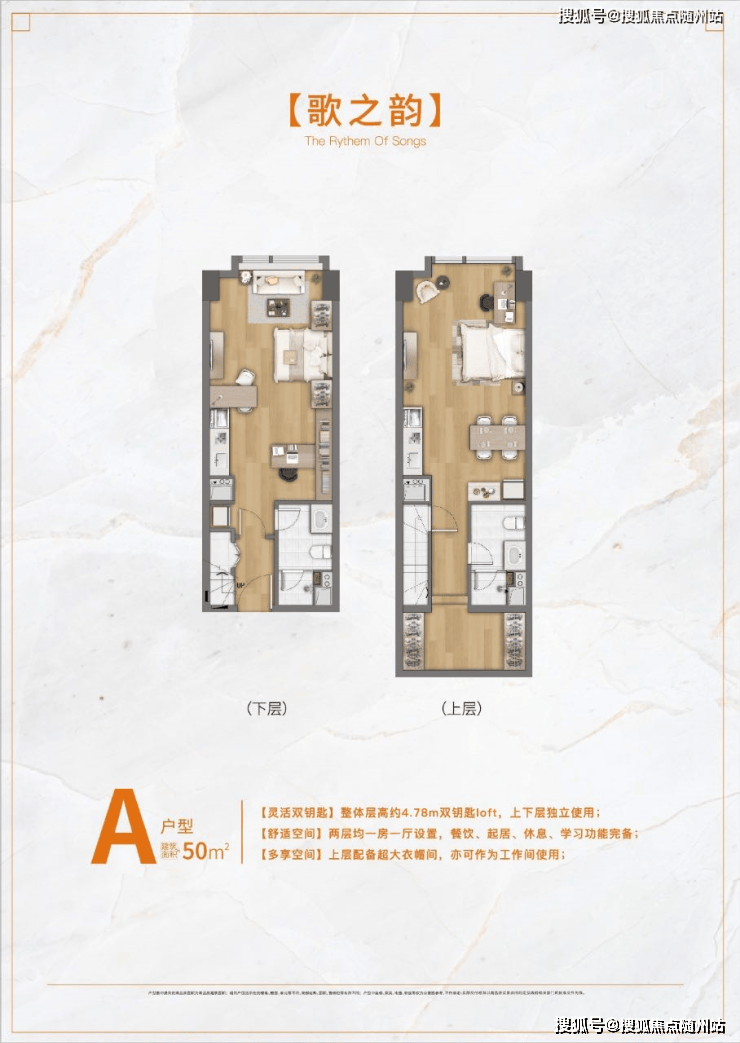 约20万方城市综合体,规划双钥匙LOF精装公寓、潮流商业街区、星级酒店三大业态,项目约4.78米层高双钥匙精装LOFT,两层均一房一厅设置,居住功能科学合理,可居住更可分租两户;超万方商业金街打造吃喝玩乐一站式消费体验;星级君澜酒店,提升区域居住品质,为精英生活创造更多可能。