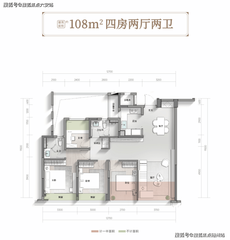 左右滑动查看更多 | △约108㎡A户型样板房展示示意图