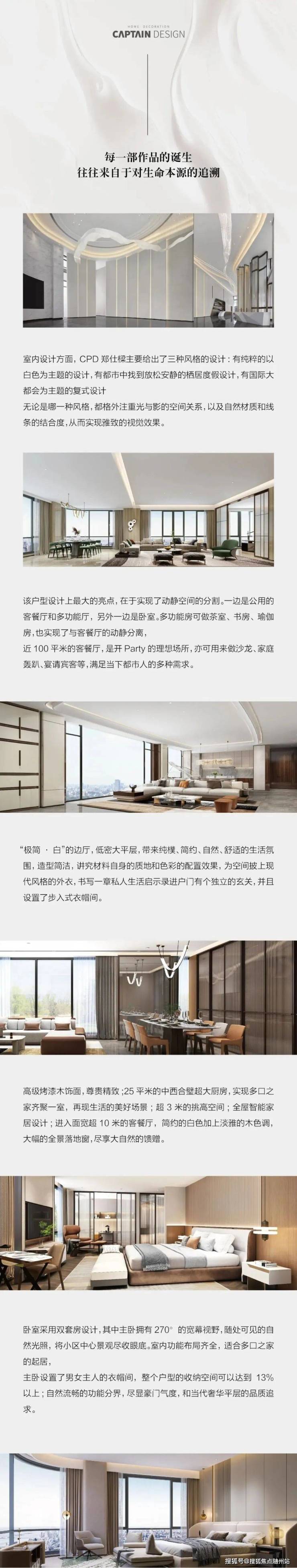 室内设计方面,郑仕樑主要给出了三种风格的设计:有纯粹的以白色为主题的设计,有都市中找到放松安静的栖居度假设计,有国际大都会为主题的复式设计。