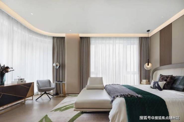 主卧设置了男女主人的衣帽间,整个户型的收纳空间可以达到13%以上;自然流畅的功能分界,尽显豪门气度,和当代奢华平层的品质追求。