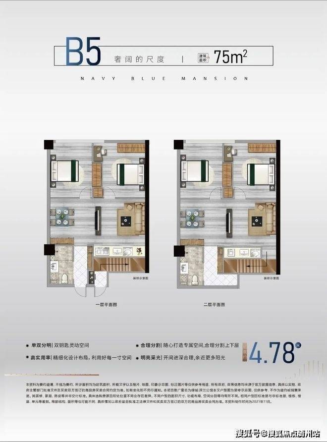 灵动空间设计:4.75米层高,主力45㎡-55㎡,涵盖单户、“双钥匙”“三钥匙”产品,满足自住、租赁、办公多场景需求。