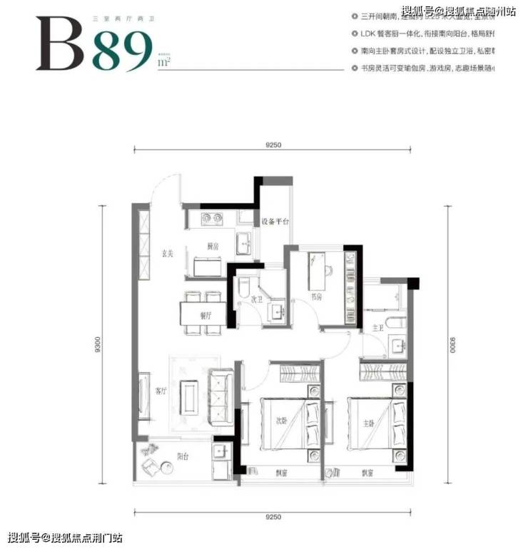 月琉璃没有随大流主打100多㎡三房,而是重塑经典的89㎡三房两卫,三开间朝南+双飘窗布局,厨房还能放下双开门冰箱。