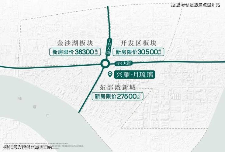 又因杭州限价以路为界,下沙1号大转盘数百米内,神奇地形成了3个限价梯度:38300元/㎡的金沙湖、30500元/㎡的开发区,27500的元/㎡东部湾新城。