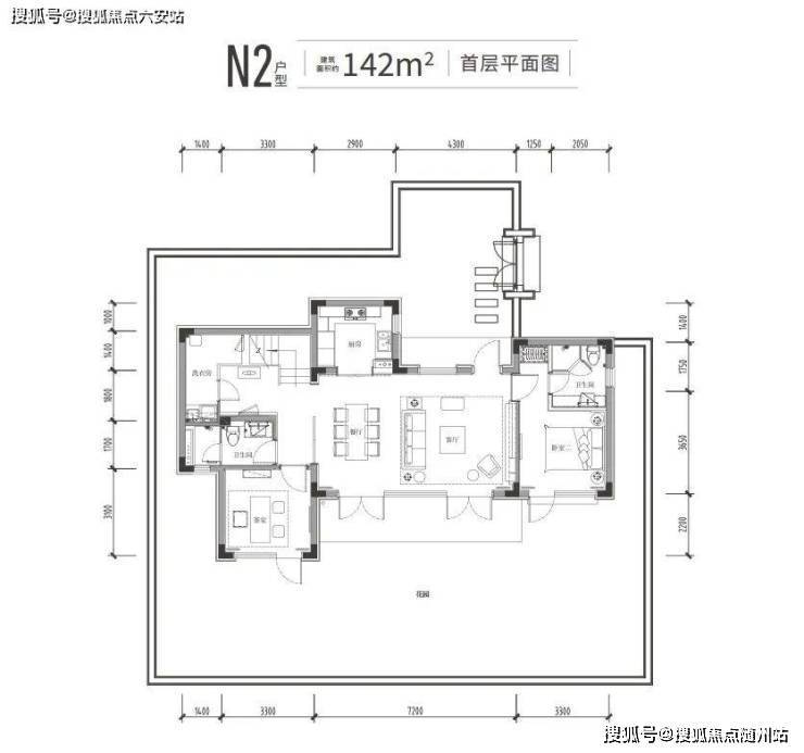 142㎡户型为例,面宽约15.2米,标准4房4卫。一楼是约7.2米长的双面采光大横厅,除了老人套房,还有个向院子伸出的“X空间”。它既能用作茶室、棋牌房,也能成为私密的客卧。拥有两个套房,主卧还是带南向独立衣帽间+带浴缸卫生间+露台“满配套房”!无论采光还是实用性,都碾压普通合院。