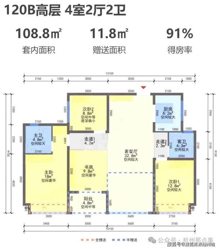 阳台仅算一半建筑面积,实际得房率极高!