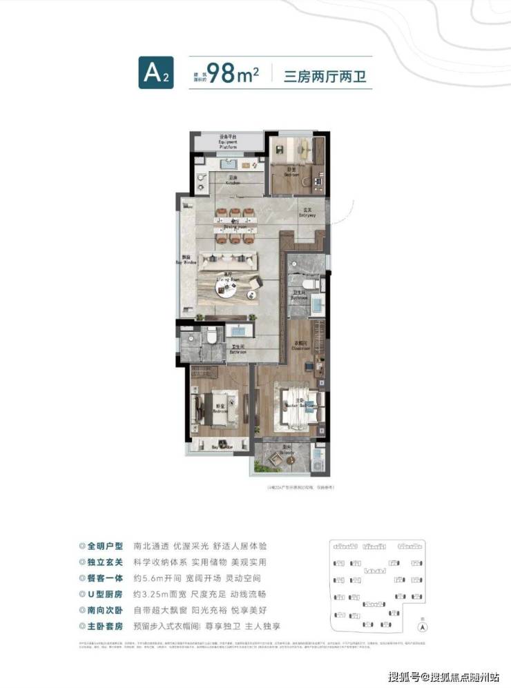 ▲建面约98方边套户型图