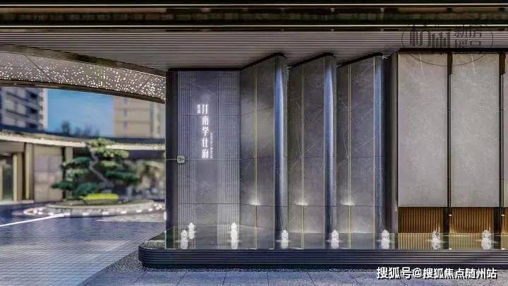 汲取四季酒店设计精髓,于社区主入口打造豪华酒店大堂式归家设计,以迎宾落客区--会 所式大堂--摩尔会客厅的渐进式排布,勾勒出入境--入画--归影的三重归家仪制。落客区采用酒店泊湾式环岛,尊崇与仪式融贯一体;会 所式大堂融入“会客厅”理念,空间纵深开阔,给予业主更多的舒适便利;摩尔会客厅叠石翠景,两侧灵动水系映泉满堂,一步一景,各有天地。