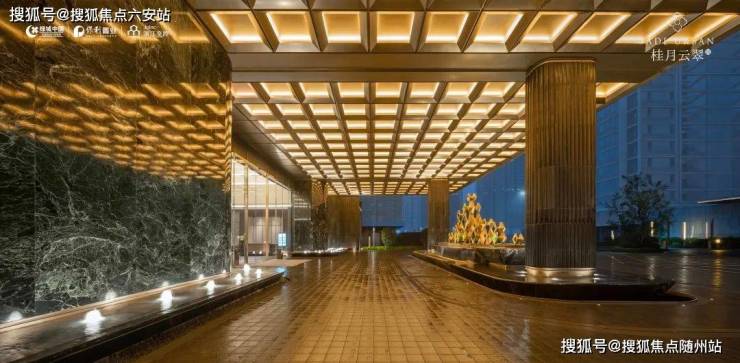 约50m的“翡月之门”,是绿城保利交控·桂月云翠带给人的最初印象。流金穹顶与皇家金檀大理石构画的背景前,一方环岛车行落客区,令五星级酒店式归家成为现实。“明月松间照,清泉石上流。”王维独到的山水观,在 下沉式庭院“空翠砯崖”上演。