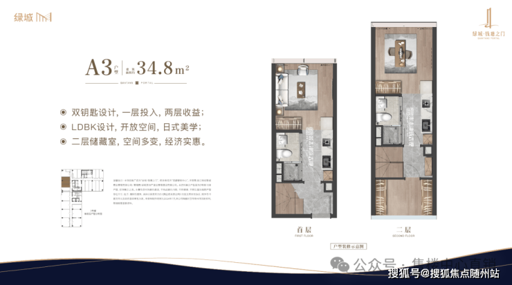 ✅ 34-95㎡双钥匙复式:低门槛高灵活度