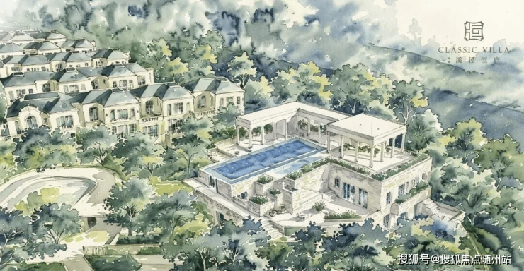 项目西南角的道路交叉路口,景观视野开阔,挑空的泳池和希腊式的柱体,形成了城市灯塔的形象;“月恒宫”会所由圆形扇厅、莫奈花园、下沉式庭院以及高达8.2米的室内恒温泳池等空间组织而成,将法式浪漫的惬意生活纳入了每一个场景;“云溪阁”则打造了纵深的自然“溪谷式”庭院,营造形象化界面同时打造内街静谧意境。