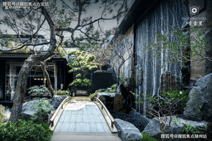 住宅立面设计延续了宋式建筑水平、简洁、飘逸的审美精髓,私人庭院内采用传统园林“堆山、叠石、理水”的造园手法,并以建筑、灌木、小桥和流水,构建起高、中、低三个层次的景致。
