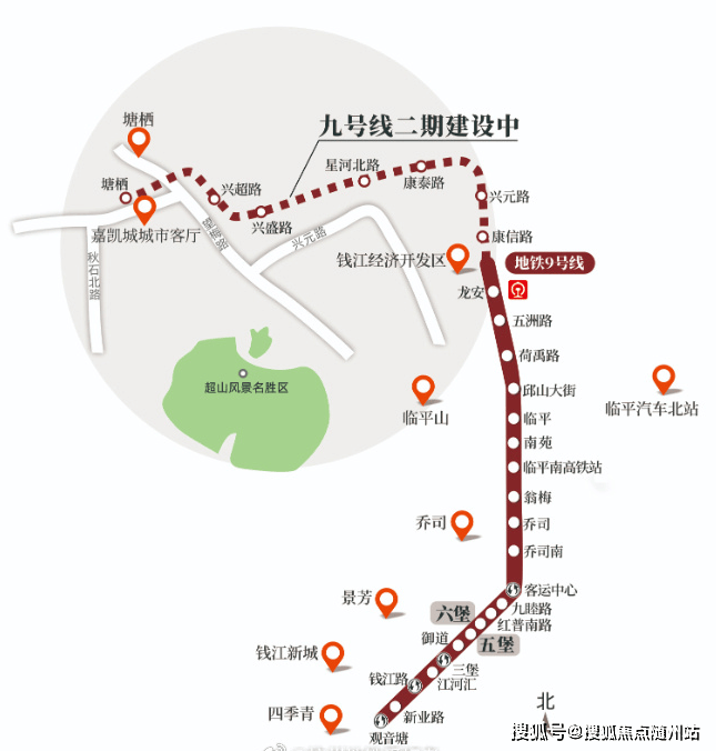 地铁9号线二期的龙安站的延伸段康信路地铁站口和兴元路地铁站口,真正做到下楼即达,与地铁无缝接轨,9号线二期开通后到钱江新城也就约45分钟。