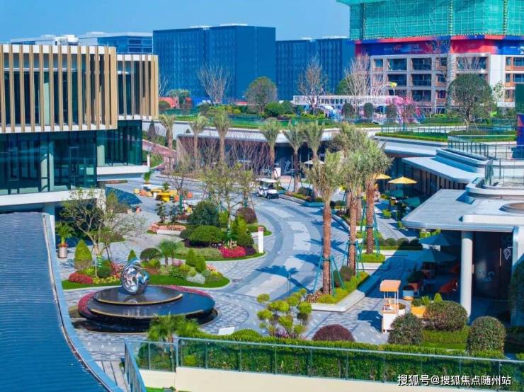 步入花街入口,视线即刻被一座圆形标志性水景雕塑所吸引。水景以层层叠叠的圆构成,涌动的水泉之上托举着金属质感的大型雕塑,整体营造出尊贵且极具仪式感的迎宾氛围,塑造出强烈的昭示性与领域感视觉焦点。