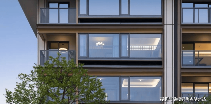 外立面用了大量金色线条,整体风格是暖色调的,不光和周边楼盘形成差异化,在质感上也贵气十足。