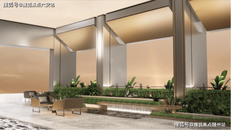 四幢高层首层均设有架空层,主入口也极具仪式感,遵循归家礼序,拉出了三进式的归家动线:高奢酒店同款的落客区---中庭水景---中心花园,一路风景相迎,俯拾皆匠心。