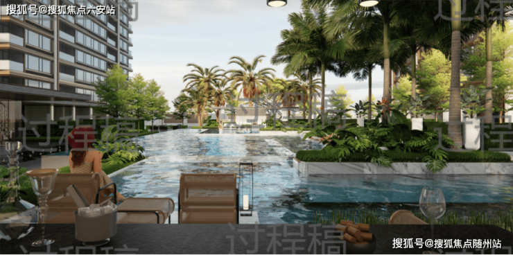 借鉴度假酒店灵感,打造高品质中央泳池,营造度假日常