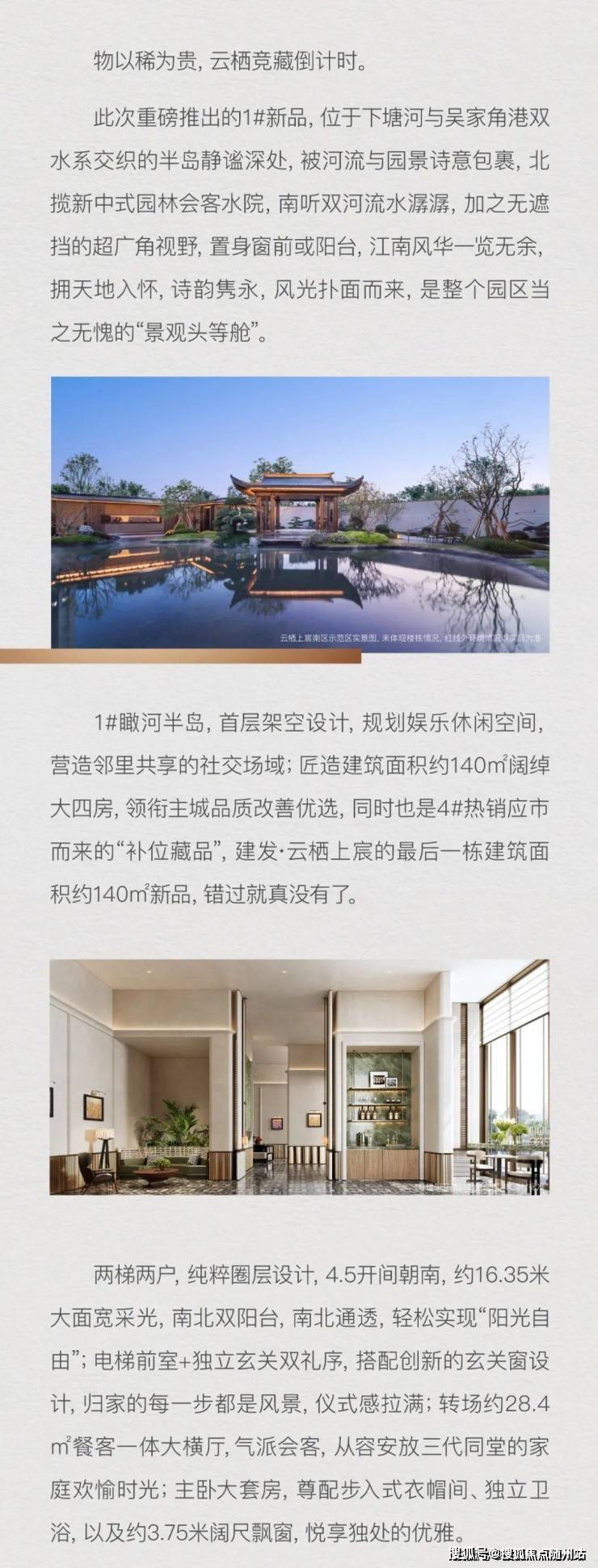 不仅拥有国风双大门+三面大面铝板+新中式园林,还做出了恒温泳池双会所和室内篮球场,每一项单拎出来,都是板块首次。