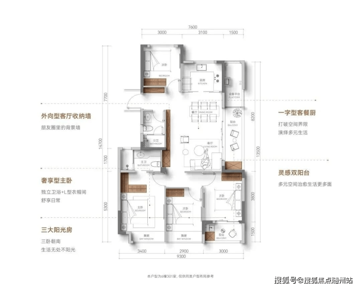 【光合面宽】约9.4米南向采光,阳光洒满角落