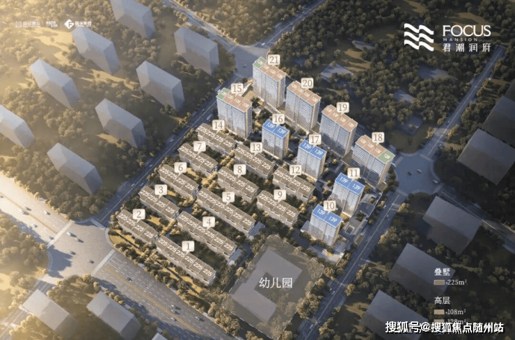 项目以1.7超低容积率打造21栋6-17层低密建筑群,包含9幢高层(108-139㎡)与12幢类独栋叠墅(225㎡),仅设582户,形成“地铁上盖+低密墅区”的稀缺组合。