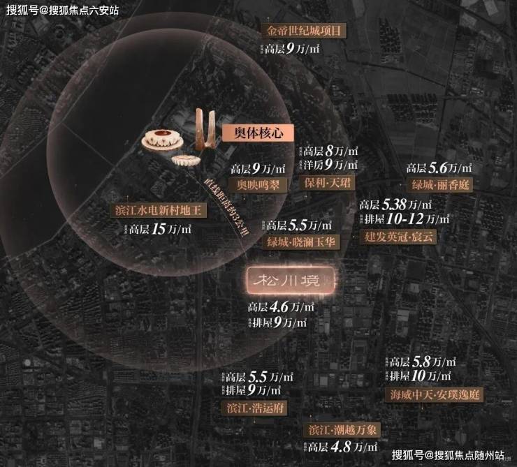 当奥体板块新房价格上限从原先4万+限价一举跃升至10万+,「松川境」的性价比更为凸显,直距「奥映鸣翠」仅约1.8km,但相比均价却低了一半。