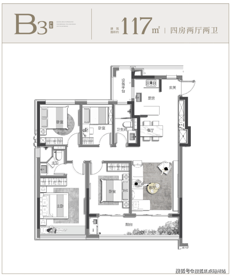 对于追求品质的改善家庭而言,置业不仅是空间的升级,更是生活格调的进阶,如何实现奢阔尺度与舒适体验的双重满足,成为核心诉求,而约 119㎡户型恰好给出了完美答案。
