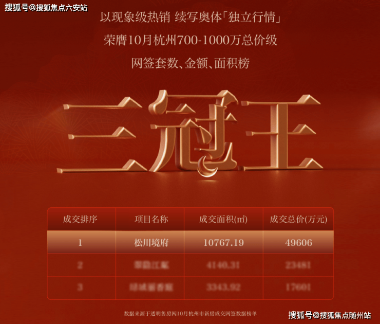 双方合作开发的「奥映鸣翠」与「松川境」两个项目,凭借卓越的产品力与精准的市场定位,强势登顶10月奥体板块网签套数TOP1、TOP2。(统计范围为奥体中心站直距3公里范围内楼盘)
